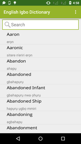 İngilizce-Igbo Sözlüğü, 50.000'den fazla İngilizce kelimenin Igbo anlamlarını sunan kapsamlı bir kaynaktır. Bu uygulama, kullanıcıların kelimeleri kolayca tarayıp kullanmalarını sağlayacak şekilde tasarlanmıştır. Ayrıca, çevrimdışı çalışma özelliği ile internet bağlantısına ihtiyaç duymadan kelimelere ulaşma imkanı sunar, bu da özellikle seyahat edenler için faydalıdır.